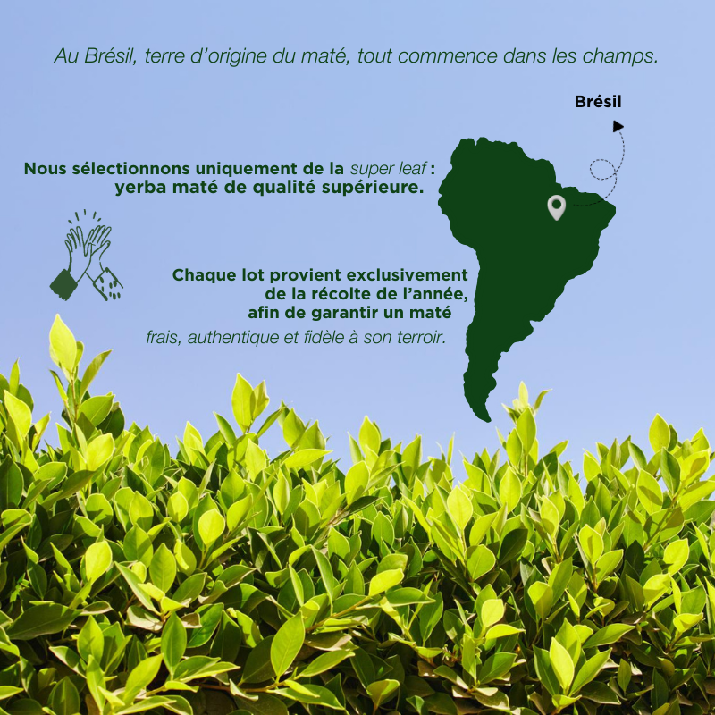 Cultivé au Brésil 🇧🇷 dans le respect de l’environnement, puis conditionné en Provence, ce maté au goût léger et équilibré, peu amer, est parfait pour que tu découvres cette boisson emblématique d’Amérique du Sud.