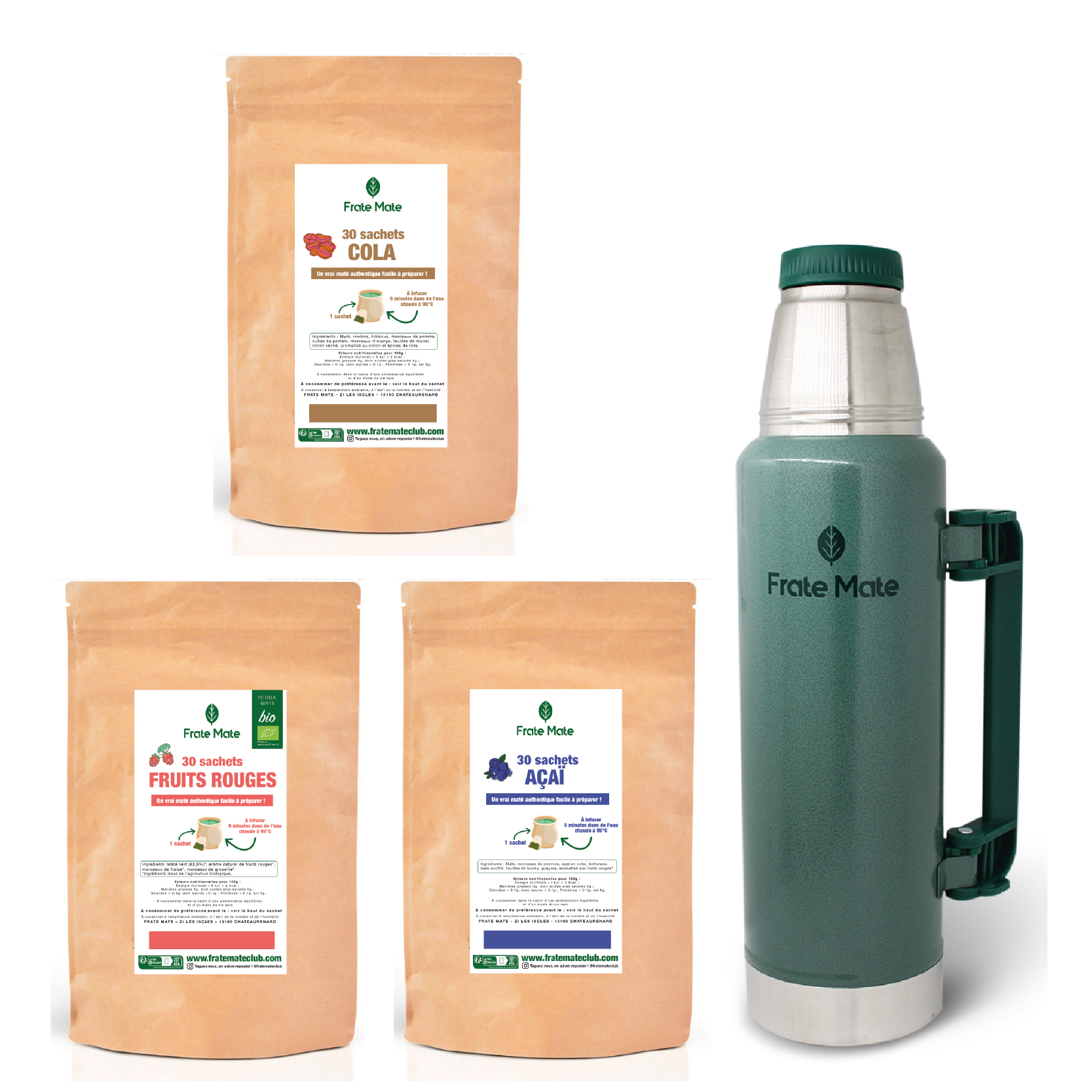 - 3 x 30 sachets de matés Fraté : Cola, Açaï et Fruits Rouges